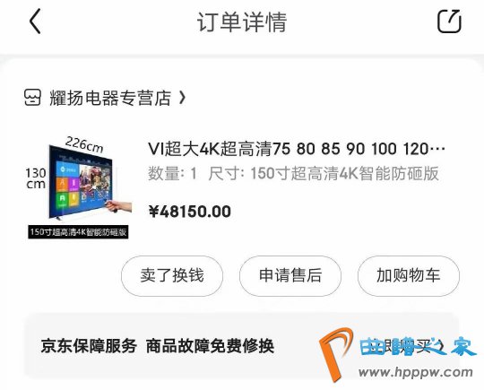 田先生称,直接购买的过程很普通也很正常,买回来之后,包装上写的就是150寸的电视,他也没有怀疑。