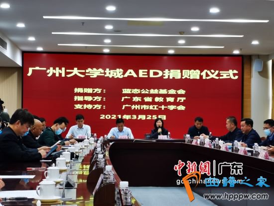 中新网广东新闻3月25日电 (记者 郭军)3月25日上午,广东省蓝态幸福文化公益基金会AED捐赠仪式在广州大学城举行。65台AED(自动体外除颤仪)将安装在广州大学城高校及周边学校,将有效提升学校的急救能力和水平。