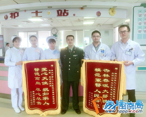 闽南网3月26日讯(闽南网记者 梁政 通讯员 黎斌 林燕妹 李春兰 文/图)“医生、护士,谢谢你们让我能重拾健康!”3月25日,漳浦的王先生将两面“特殊”的锦旗送给了第909医院骨一区医护人员,用来表达他由衷的感激之情。