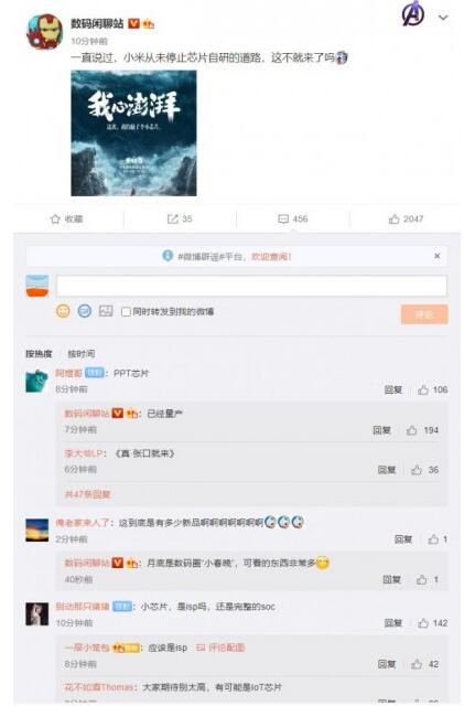 据微博博主 @数码闲聊站 爆料,小米从未停止芯片自研的道路,这次的小米澎湃小芯片并不是 PPT,而是已经量产了。