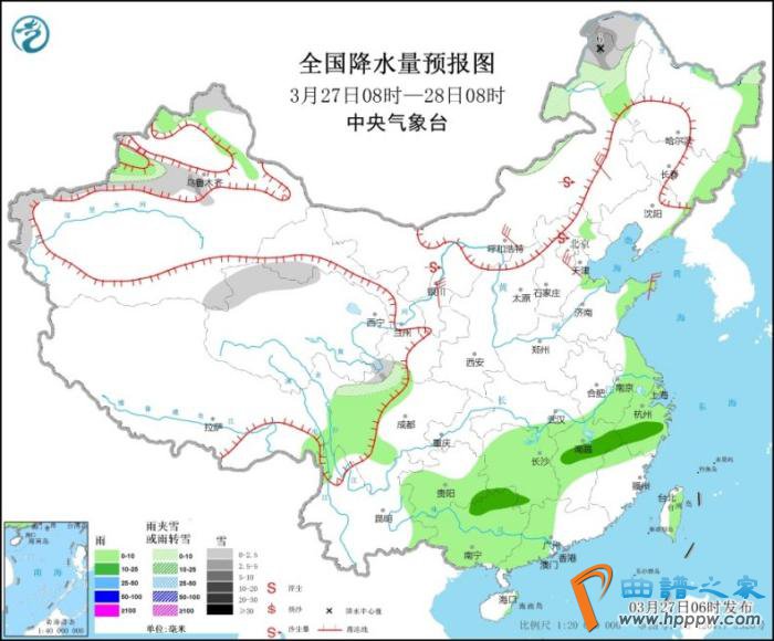 全国降水量预报图(3月27日08时-28日08时)