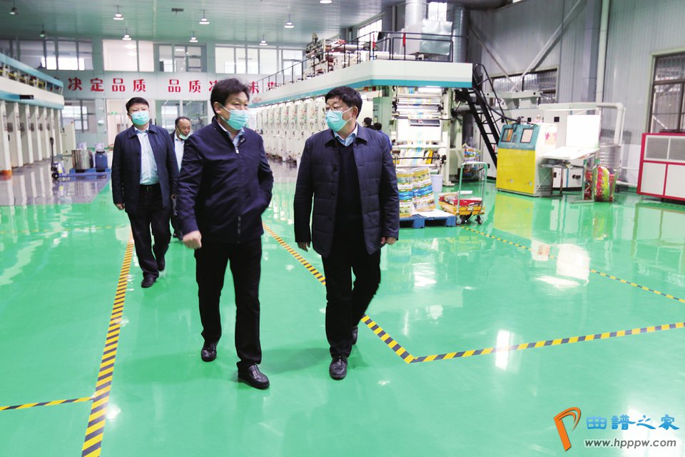 莱商银行党委书记、董事长岳隆杰(右一)到企业调研复工复产情况。