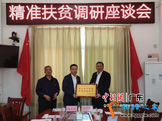 广州市重点公共建设项目管理中心党组书记苏彦鸿日前在霞洞村党群服务中心向上海宝冶赠送锦旗,肯定其助力梅州精准扶贫事业。(完)