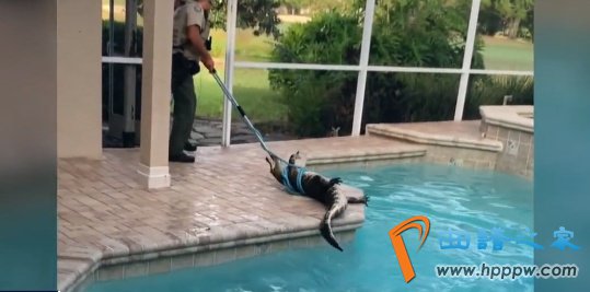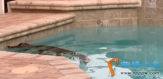 2米长鳄鱼闯入家中泳池:美国夫妇边喝咖啡 边看它游泳