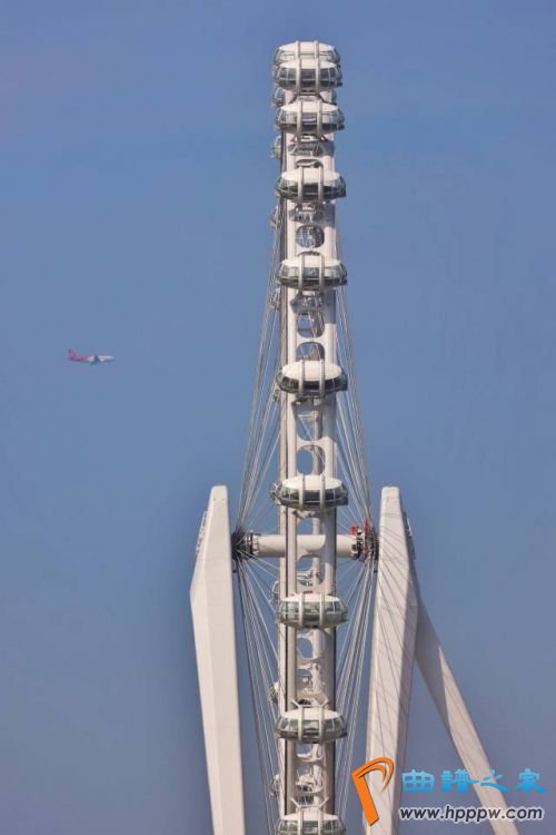 随着摩天轮缓慢旋转,人们不仅可以将轿厢外迷人的风景尽收眼底,还能拥有更多特别的“高空体验”。摩天轮总高128米,28个进口轿厢,每个可容纳25人。采用世界首创的鱼鳍状异形大立架。