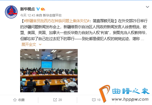 新疆官员向HM喊话:擦亮眼睛 西方在种族问题上集体失忆~