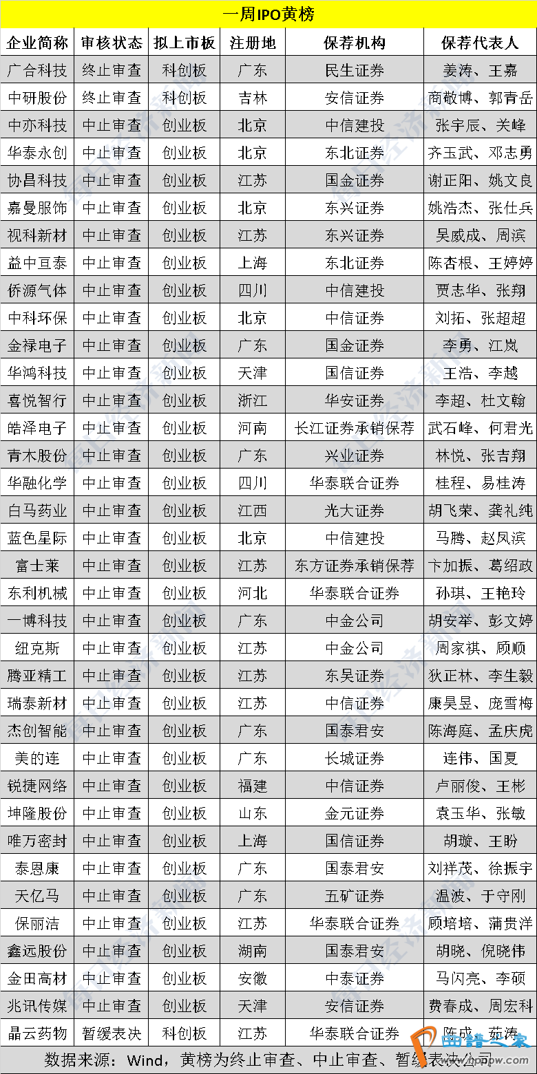 黄榜:2家公司终止审查,33家中止审查,1家暂缓表决