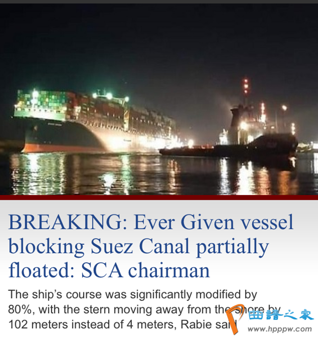 最新!苏伊士运河搁浅货船成功解困,航向位置已调整回80%~