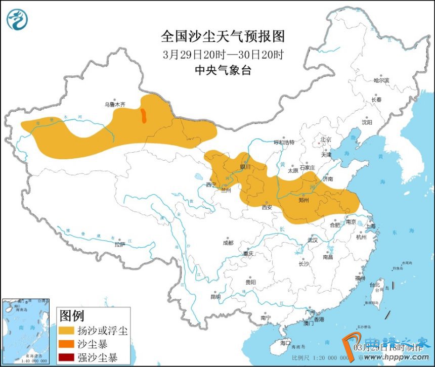 http://news.sznews.com/pic/2021-03/29/2db27c95-a887-45c5-9638-0bb21cd1d348.jpghttp://www.sznews.com/news/content/2021-03/29/content_24086158.htmhttp://www.sznews.com/news/content/mb/2021-03/29/content_24086158.htm中央气象台网站预计,3月29日20时至30日20时,新疆东部和南疆盆地、内蒙古西部、甘肃西部和东部、宁夏、陕西中部、山西南部、河北南部、河南、山东西南部、安徽北部、江苏中北部等地的部分地区有扬沙或浮尘天气,其中,新疆东部局地有沙尘暴。1/enpproperty-->