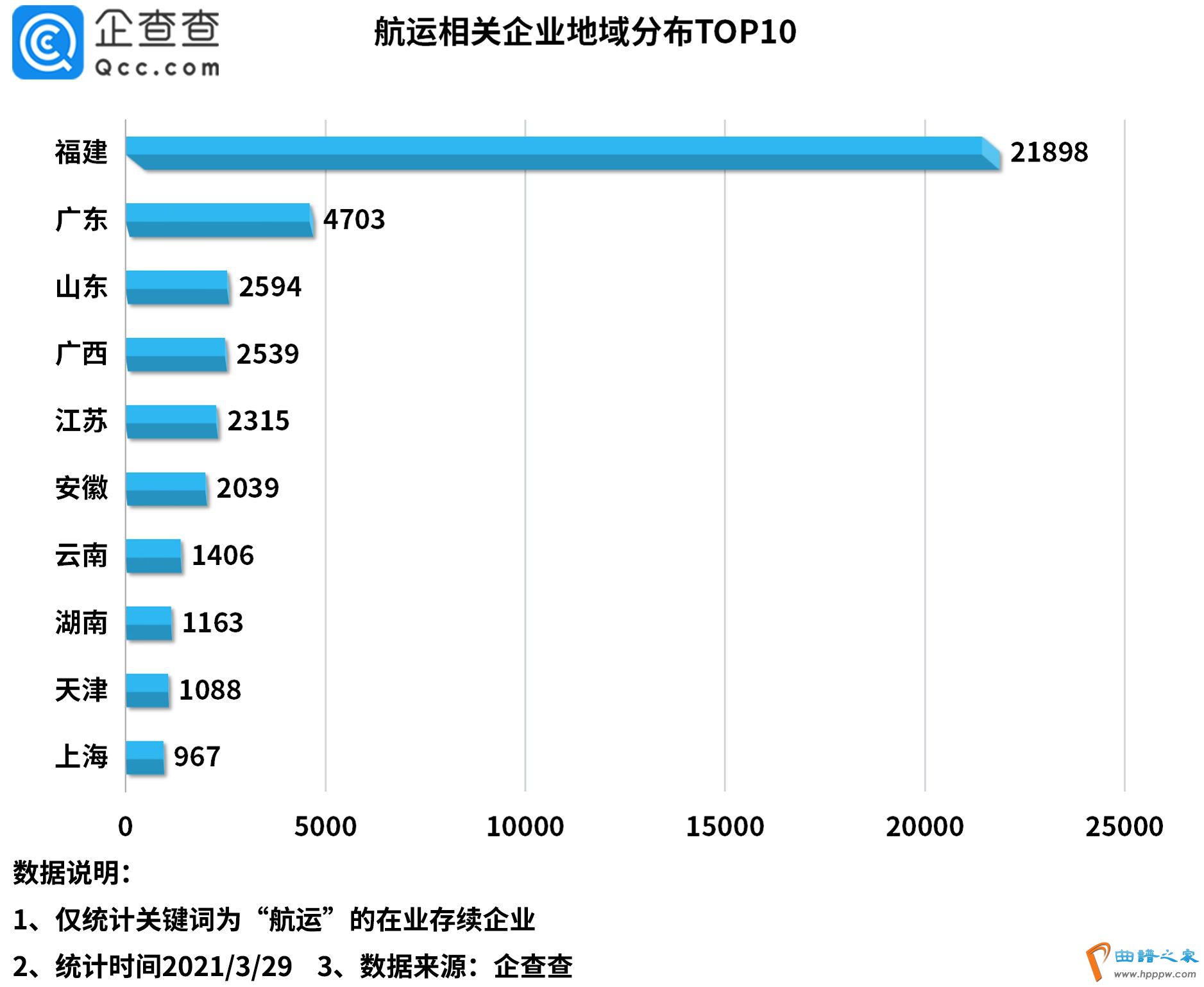 地域上,企查查数据显示,福建省拥有的航运相关企业是全国最多的,达2.2万家,占总量的46%,远超于全国其他地区。此外,广东、山东分别以4703家和2594家位列二三位。