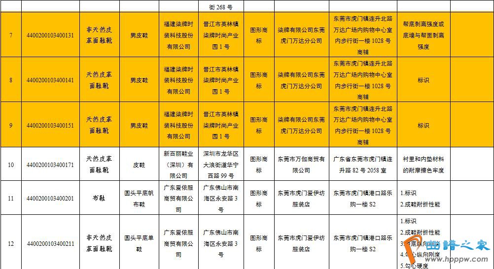 如商标为“七匹狼”的“男鞋”产品,有三批次上榜,均为“非天然皮革面鞋靴”,由“广州狼踞鞋业有限公司”生产,不合格项目主要涉及“标识”和“帮底剥离强度或底墙与帮面剥离强度”。