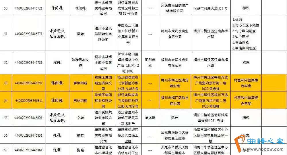 “九牧王股份有限公司”生产的一批次“男休闲鞋”上榜,原因是“衬里和内垫摩擦色牢度”不合格。相关情况同时显示,汕头市市场监管局于2021年2月25日组织对生产者的整改情况进行复查,结论为合格。