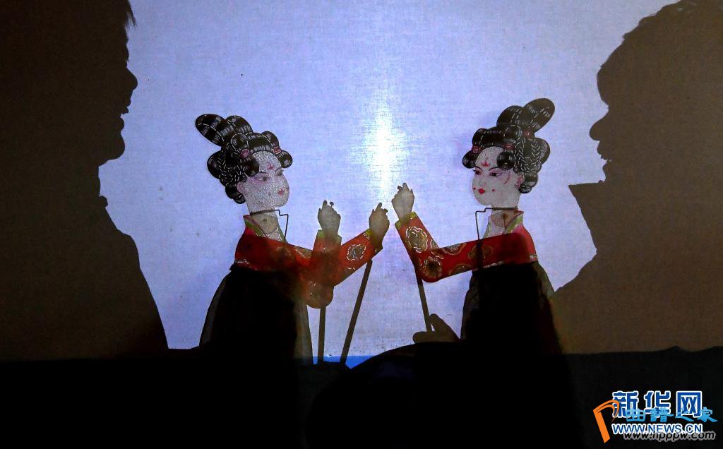 李赛(右)和演员在排练皮影戏(3月19日摄)。新华社记者 李安 摄