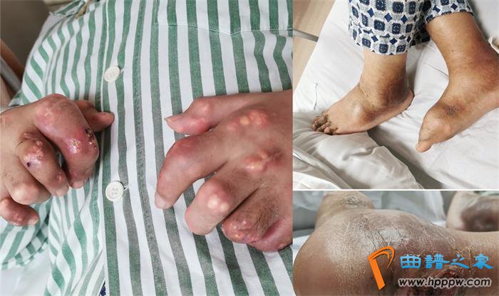近日,广医二院风湿免疫科来了一位27岁的小伙子,他右足反复溃烂,四肢多个关节可见大大小小黄白色疙瘩,关节畸形,触目惊心!