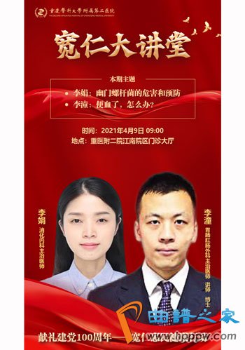 4月9日“献礼建党100周年·宽仁惠民健康行动”第二期活动将于重医附二院江南院区正式启动,具体如下: