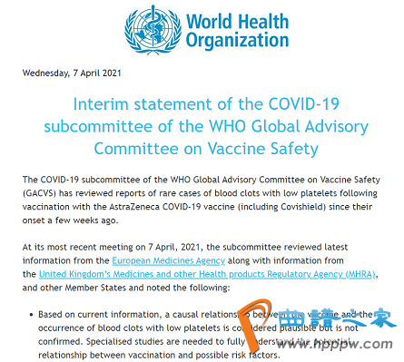 据央视新闻,当地时间7日,世卫组织发布阿斯利康新冠疫苗安全性临时声明,声明指出,世卫组织全球疫苗安全咨询委员会新冠肺炎小组委员会已评估了接种阿斯利康新冠疫苗后出现血栓和血小板减少的报告,于4月7日召开了最新一次会议。