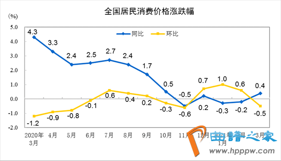 2021年3月份居民消费价格同比上涨0.4% 环比下降0.5%