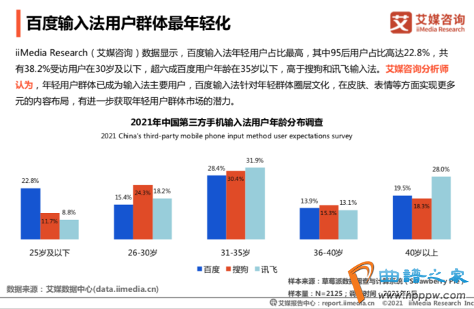 据《报告》显示,目前手机输入法整体呈现年轻用户占主流、一二线城市用户占比高的特点。其中百度输入法年轻用户占比最高,超六成年龄在35岁以下,95后用户占比更高达22.8%。年轻用户对输入法的需求不仅仅是快速准确,够炫酷好玩才能占据心中C位。艾媒咨询分析师认为,百度输入法针对年轻用户关注的圈层文化,在皮肤、表情等方面进行更多元的内容布局,有进一步获取年轻用户市场的潜力。