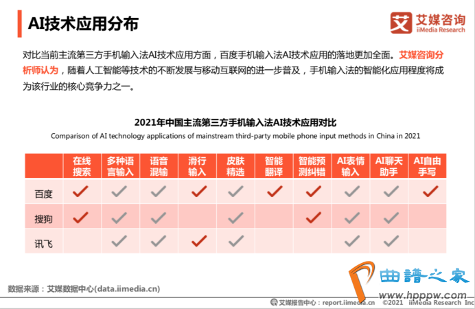 从PC时代的“拼词库”,到移动互联网时代的“拼体验”,再到如今的智能时代,输入法行业竞争已成为AI技术实力的比拼。艾媒分析师认为,各大输入法平台会将智能化、多元化、创新化的技术作为发展核心,更好地满足用户需求并巩固自身的行业地位。在百度擅长的AI赛道上,百度输入法将如何在2021年继续领跑行业令人期待。