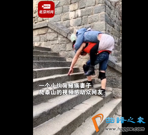 山东男子连续4年背瘫痪妻子爬泰山:她想看泰山日出,我就背她上