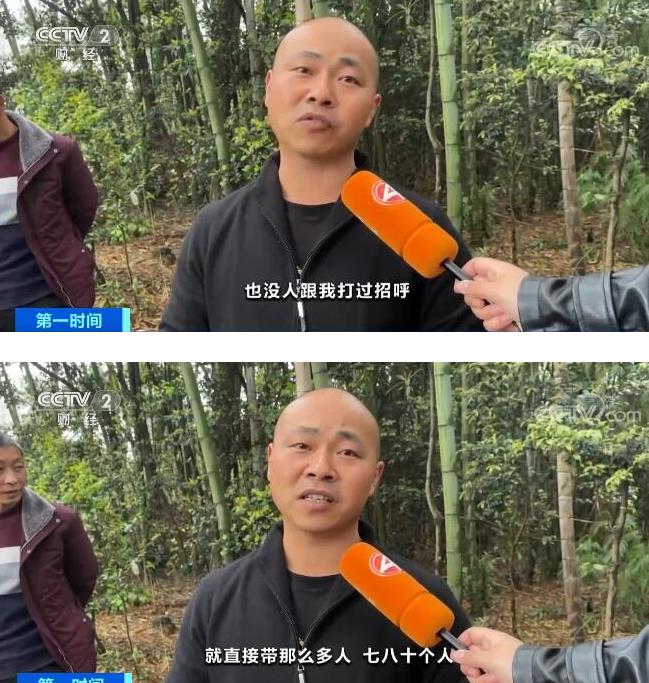 村民 张先生:每人都提了一口袋,有剥了壳的,有没剥壳的。我们就问他,你们这些笋是从哪里挖的?他说导游带他们来采挖体验基地,当时我很气,说真的,又没有人跟我说过什么挖笋体验或者是什么的,也没人跟我打过招呼,就直接带那么多人来我竹林里面挖笋。