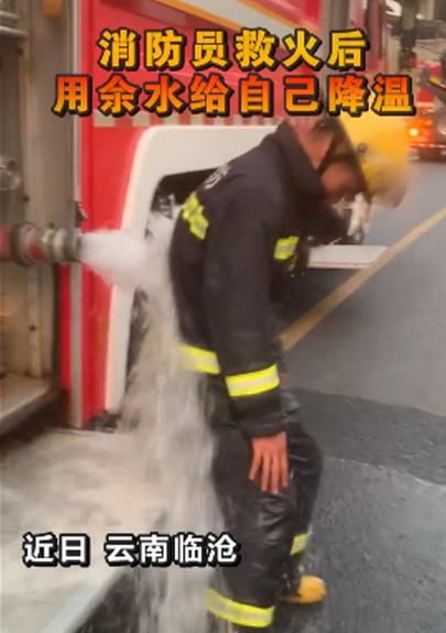 近日,云南临沧,消防员灭完火后,身上烤的太热。用供水口剩的余水给自己降温。网友:看着让人心疼。为你们点赞!