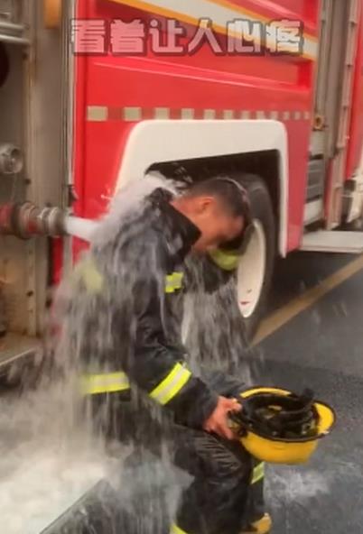 消防员灭火后用余水给自己降温,画面看了让人心疼