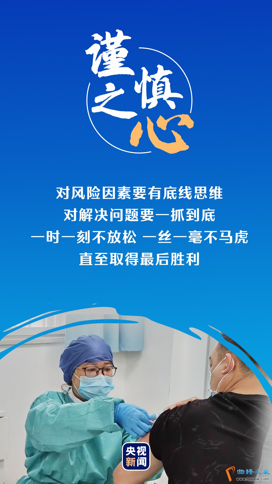 牢记总书记嘱托,广大党员干部满怀谨慎之心,对这场疫情防控人民战争、总体战、阻击战一抓到底,一时一刻不放松,一丝一毫不马虎,直至取得最后胜利。