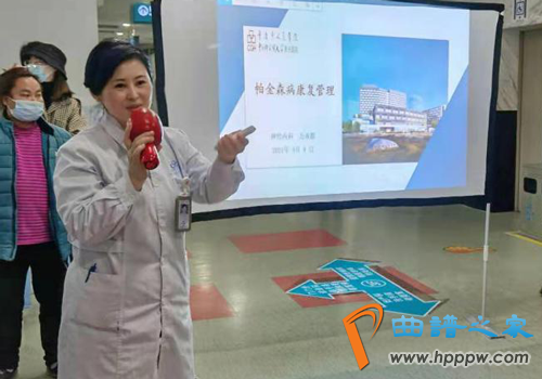 护士长万承群给帕友们讲解康复训练。院方供图
