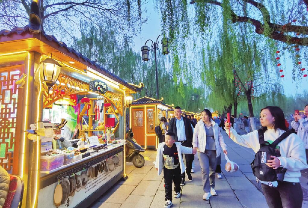 仲春时节,当夜幕降临、华灯初上之时,济南老城区的曲水亭街和百花洲在各色灯光的点缀下韵味又增添了几分。身边是平静如镜的湖面,湖畔是垂柳依依,构成了一幅“小桥流水人家”的雅致画卷,让漫步在此的市民感受着撩人的夜色、无边的景致,置身其中流连忘返。