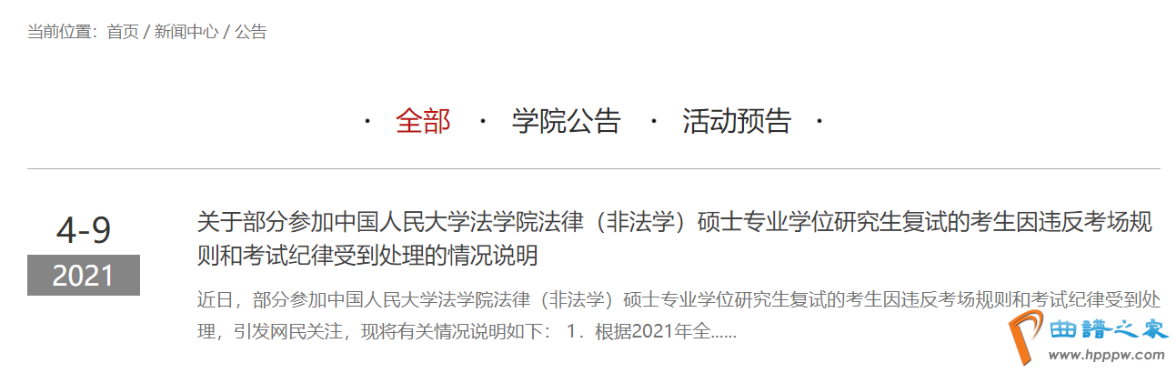 就此事,中国人民大学法学院发布公告。公告全文: