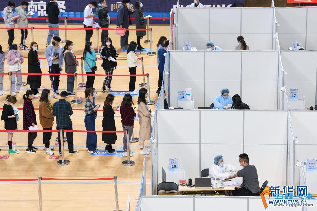 4月9日,市民在南京市鼓楼区五台山体育中心设置的新冠病毒疫苗集中接种点排队等待接种疫苗。近日,江苏省南京市在鼓楼区五台山体育中心设置新冠病毒疫苗集中接种点。这是目前南京市最大规模的集中接种点,单日接种量可达10000剂次。新华社记者 李博 摄