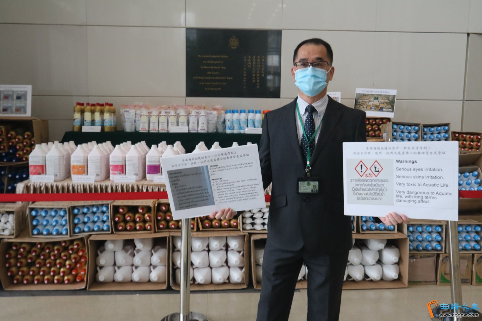 海关表示,涉案清洁剂、沐浴露仅用泰文、或英文和泰文展示警告,并无中文警告字句。这些泰文经翻译后,均为一些警告消费者字句的意思,包括它存放时要远离小孩、宠物及食物,这些清洁剂当然不能食用,以及避免接触眼睛、皮肤和吸入、使用时要用塑胶手套等作保护,容器应避免遗在溪涧,有毒性影响河流生态等。海关指,有关产品由泰国进口香港,将交由政府化验所进行安全化验,并继续调查,不排除稍后有更多人被捕。