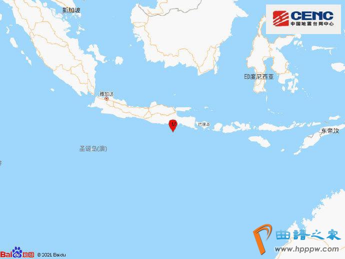 印尼爪哇岛以南海域发生6.0级地震 震源深度70千米