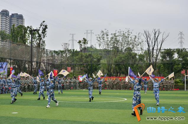 在教师们精心排练的旗舞后,全园师生及幼儿爸爸们身着海陆空三军迷彩服,跟随者国旗手稳健的步伐进入了场地,在主席台前响亮地喊出了自己方阵的口号。