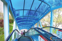 4月11日,经十路燕山立交桥以东的两座过街天桥处,自动扶梯上方的遮雨棚相继安装到位。 遮雨棚采用钢架结构,呈n形罩在扶梯上方,钢架结构外层安装有深蓝色的装饰板,既可以遮挡风雨,也可以遮挡夏季的烈日,阳光透过深蓝色的透明板,给人海底隧道的感觉。 (...