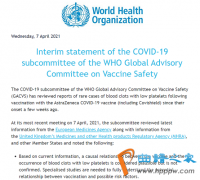 据央视新闻,当地时间7日,世卫组织发布阿斯利康新冠疫苗安全性临时声明,声明指出,世卫组织全球疫苗安全咨询委员会新冠肺炎小组委员会已评估了接种阿斯利康新冠疫苗后出现血栓和血小板减少的报告,于4月7日召开了最新一次会议。 委员会还评估了欧洲药品管...
