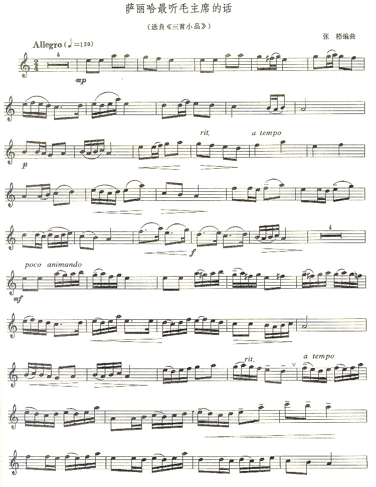 《萨丽哈最听毛主席的话》其他曲谱 未知