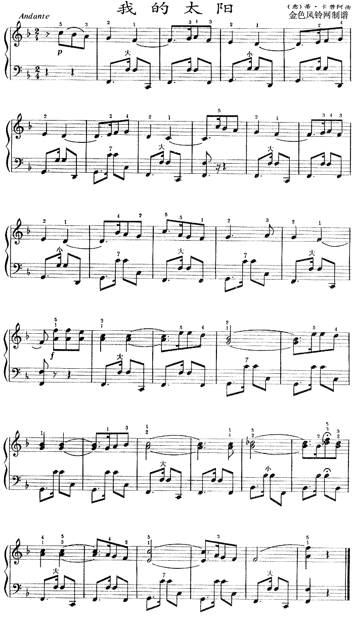 《我的太阳》简谱 点这里