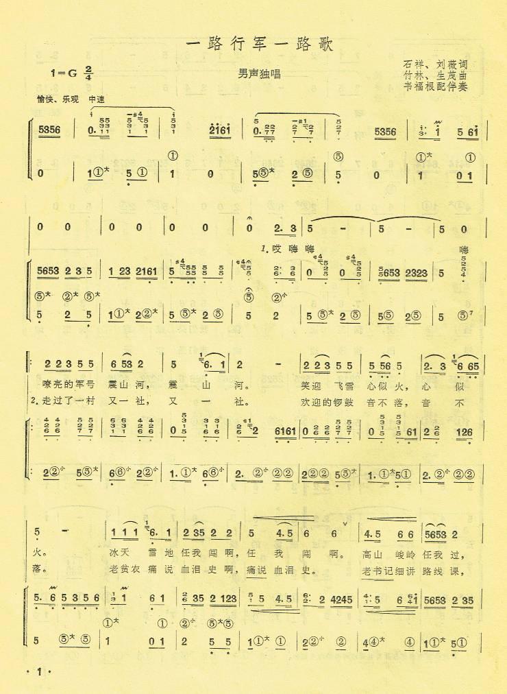 《一路行军一路歌(手风琴简谱系列54)》手风琴谱