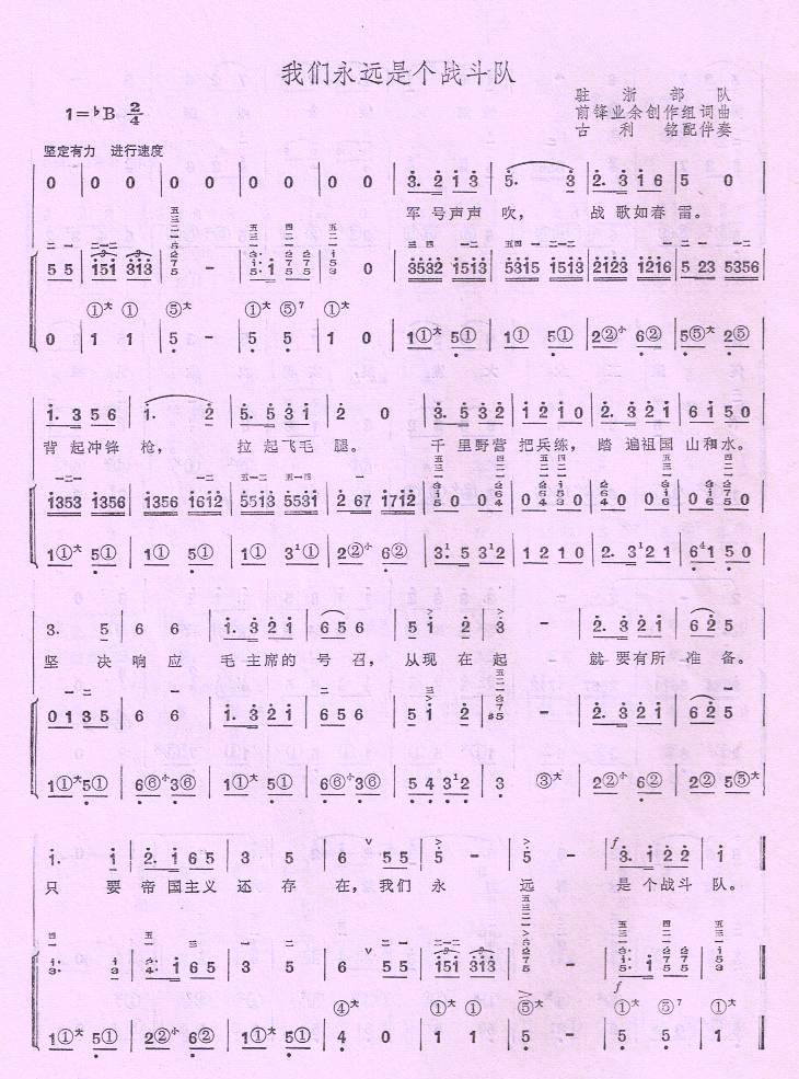 《我们永远是个战斗队(手风琴简谱系列53)》手风琴谱