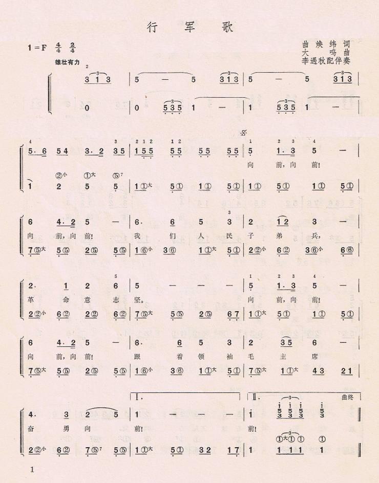 《行军歌(手风琴简谱系列65)》手风琴谱