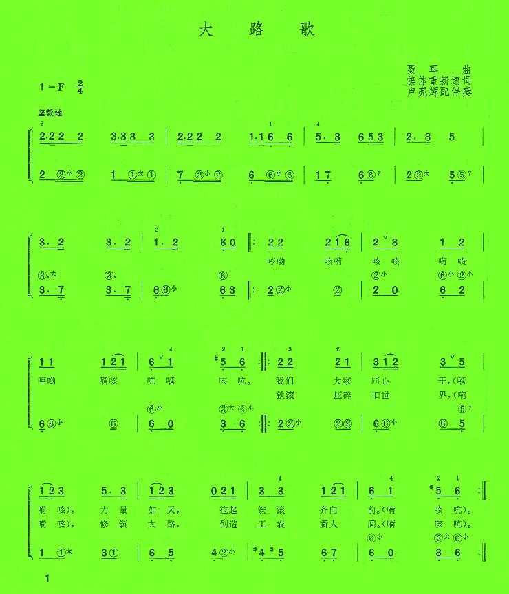 《大路歌(手风琴简谱系列70)》手风琴谱