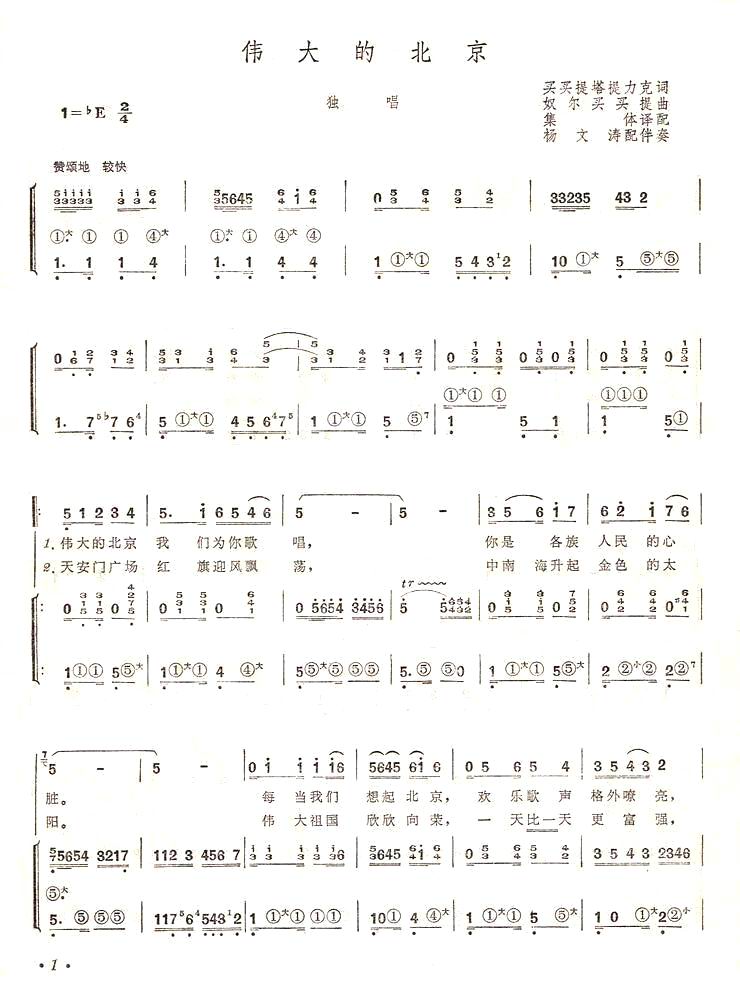 《伟大的北京(手风琴简谱系列77)》手风琴谱