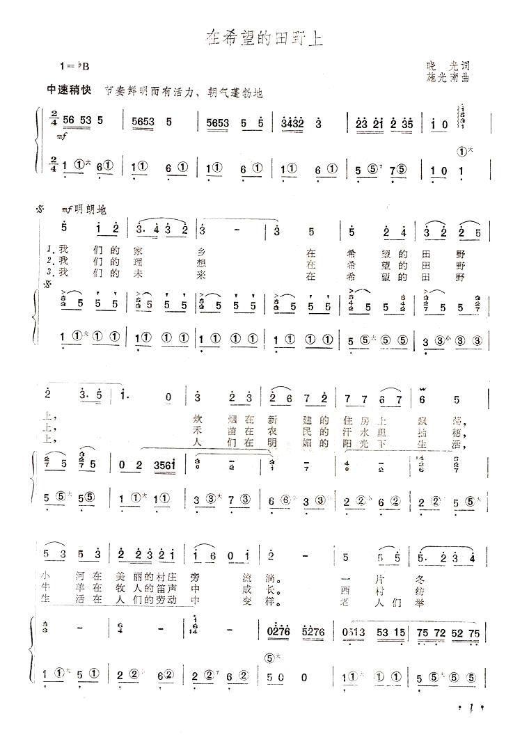 《在希望的田野上(手风琴简谱系列86)》手风琴谱