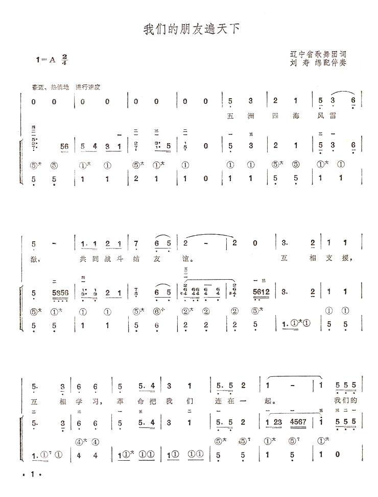 《我们的朋友遍天下(手风琴简谱系列85)》手风琴谱