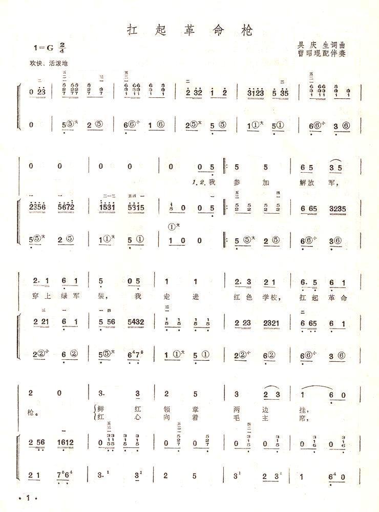 《扛起革命枪(手风琴简谱系列81)》手风琴谱