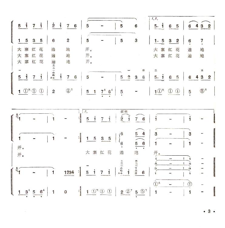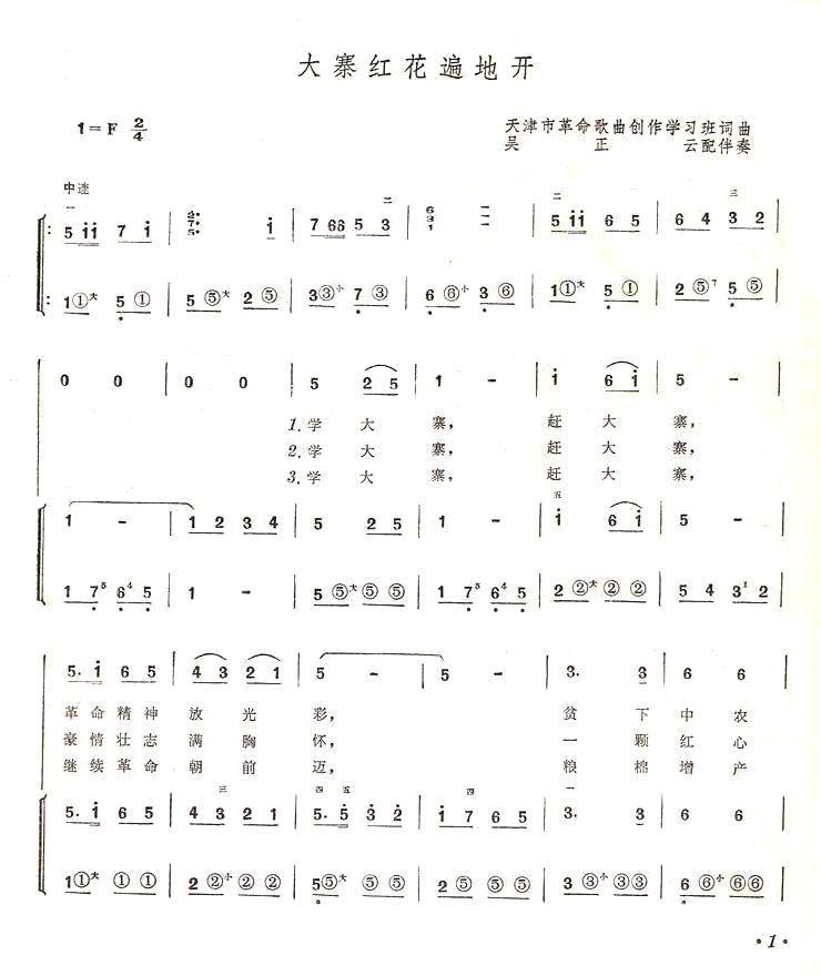 《大寨红花遍地开(手风琴简谱系列79)》手风琴谱