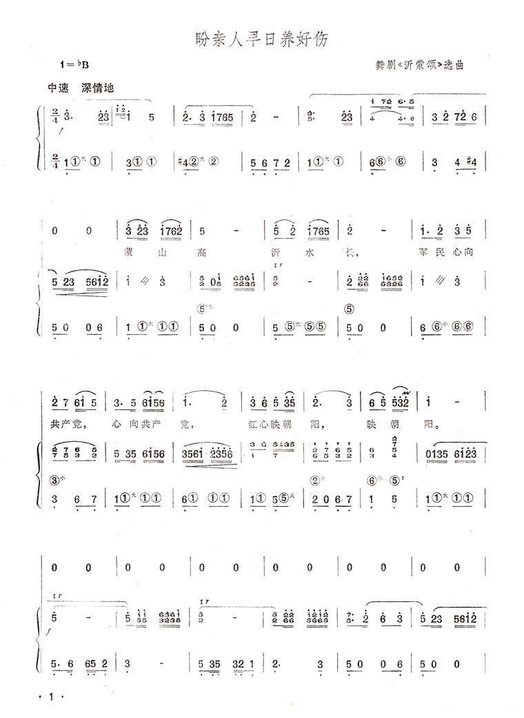 《盼亲人早日养好伤(手风琴简谱系列96)》手风琴谱