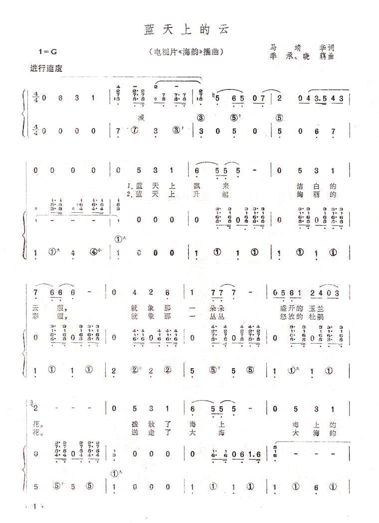 《蓝天上的云(手风琴简谱系列95)》手风琴谱